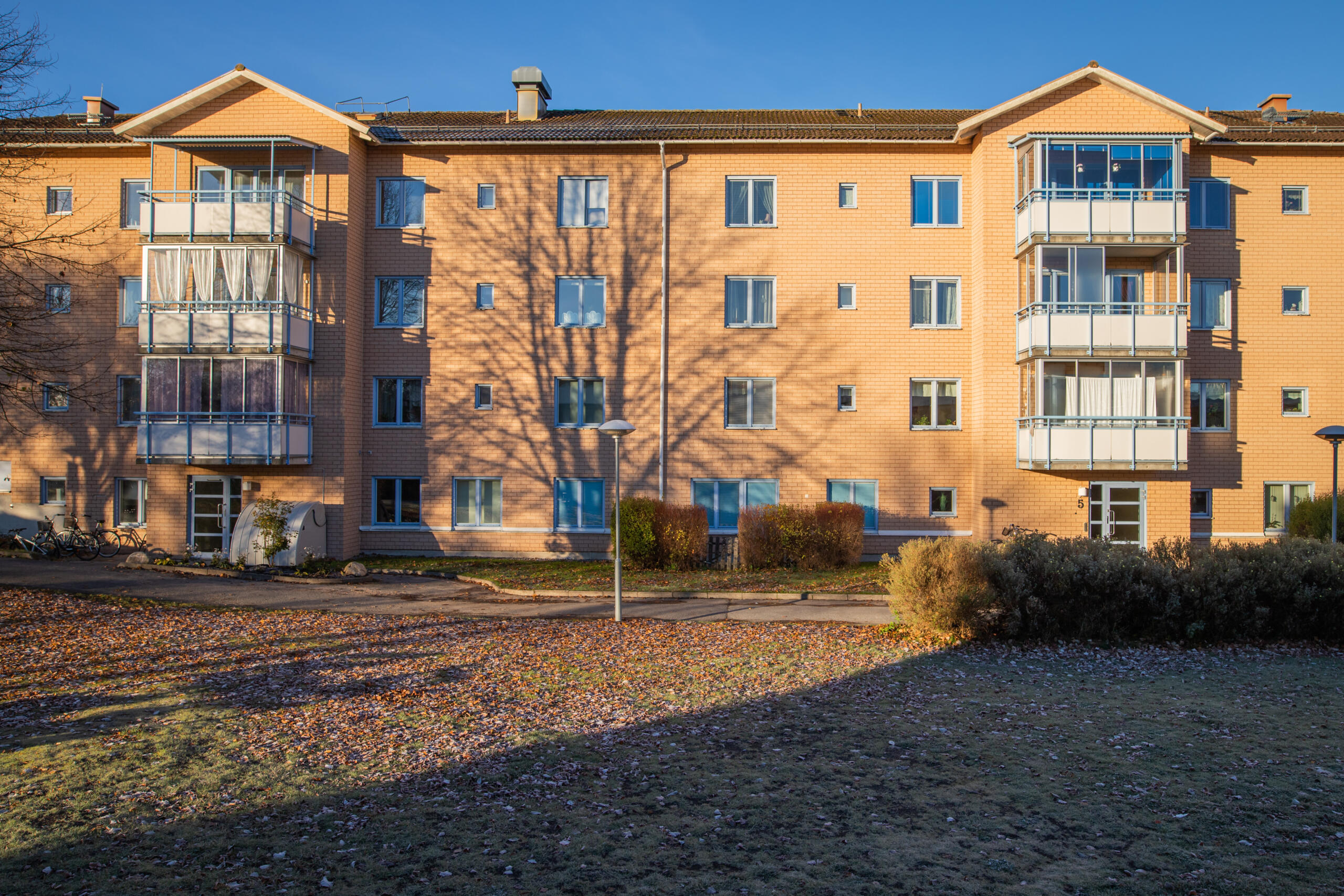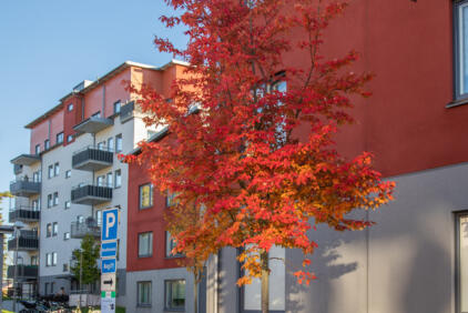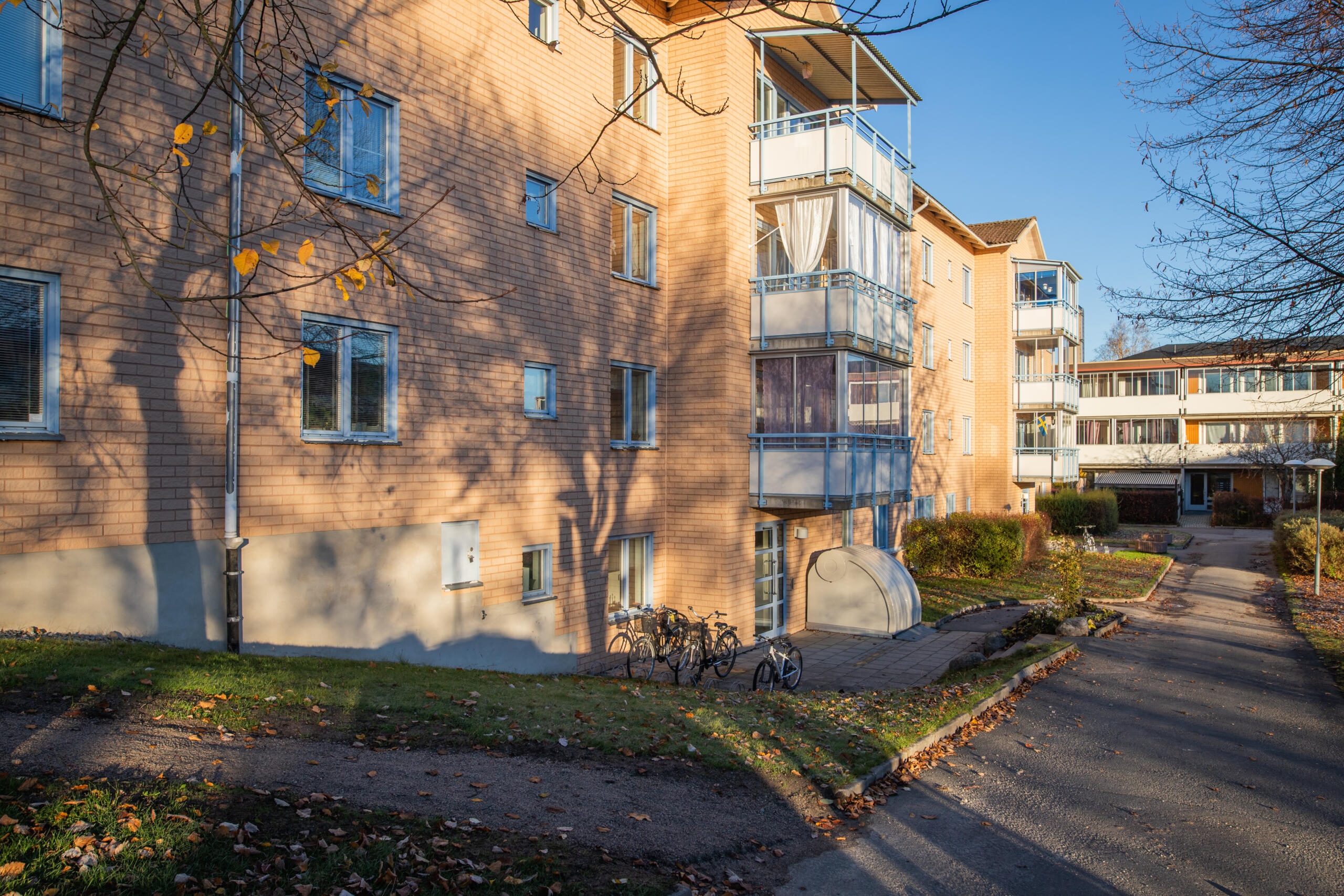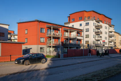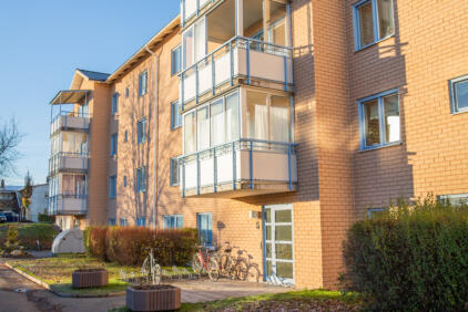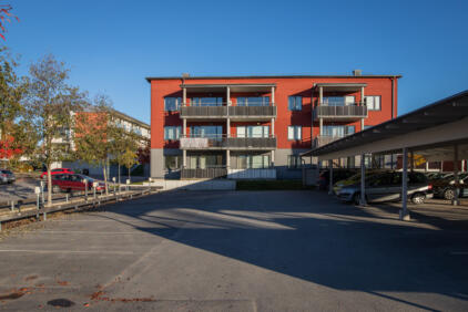 På Järnavägen 5-7 har vi ett trevåningshus med 22 lägenheter i storleken 1, 2 och 4 rum och kök.