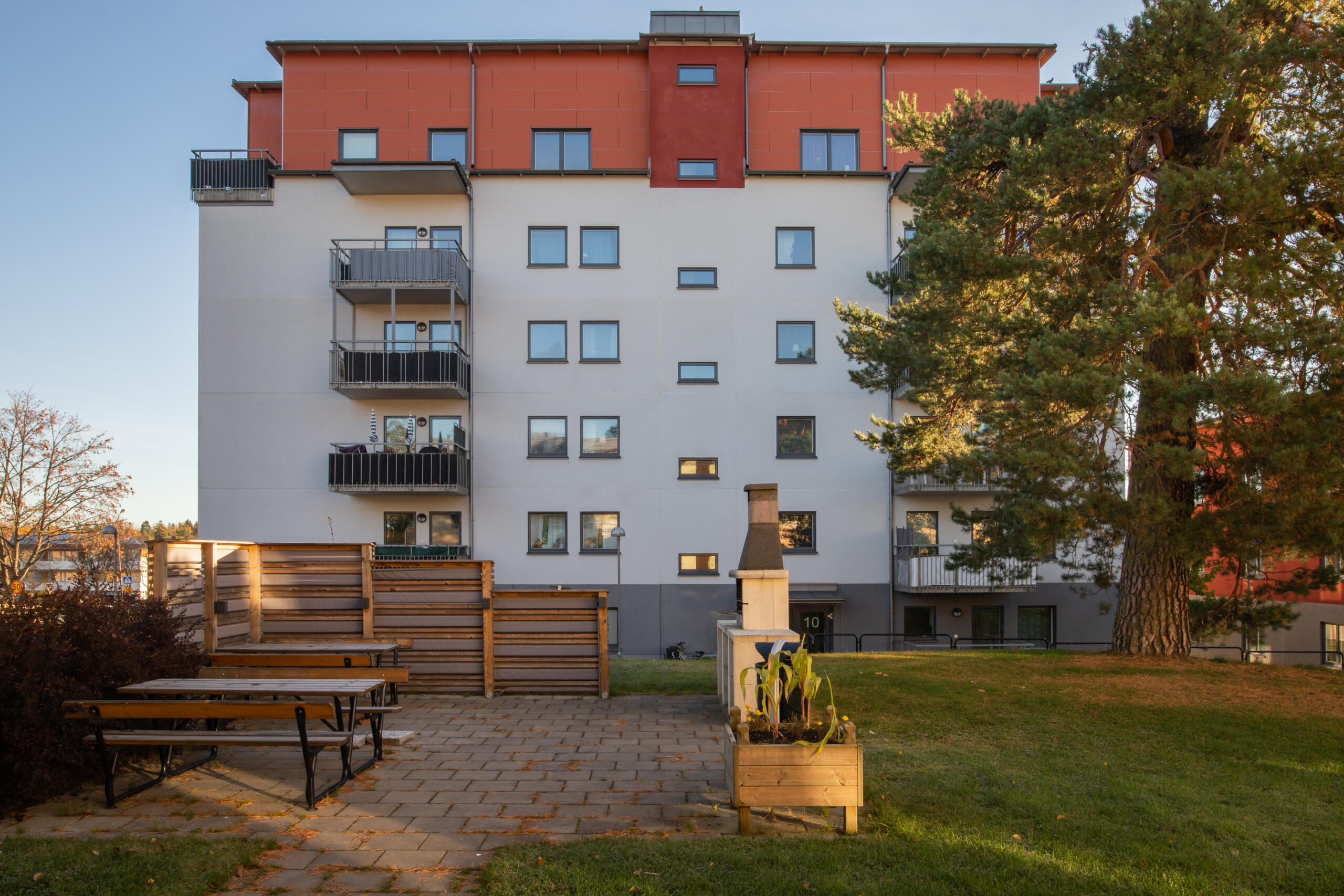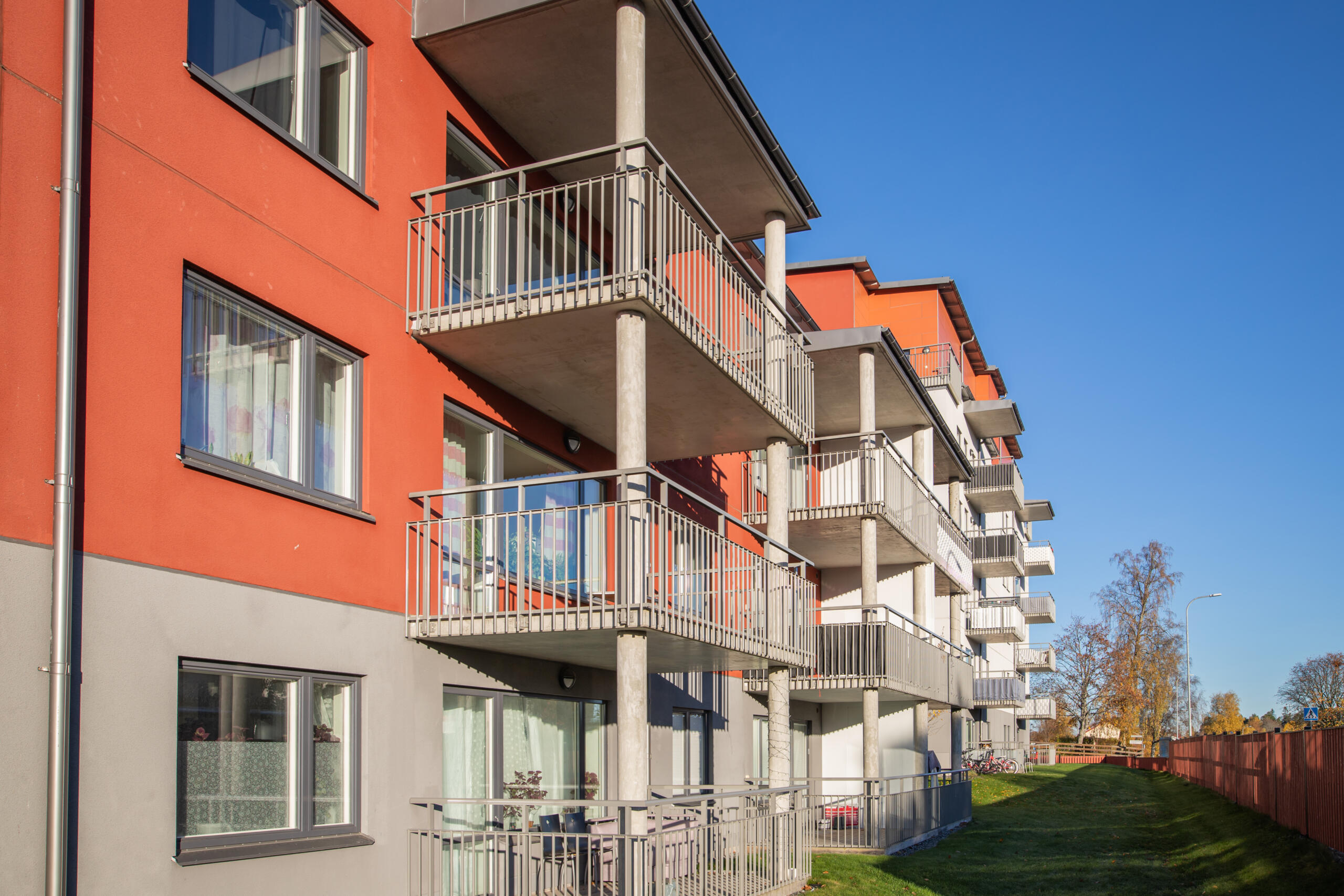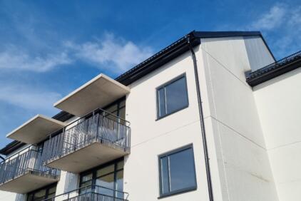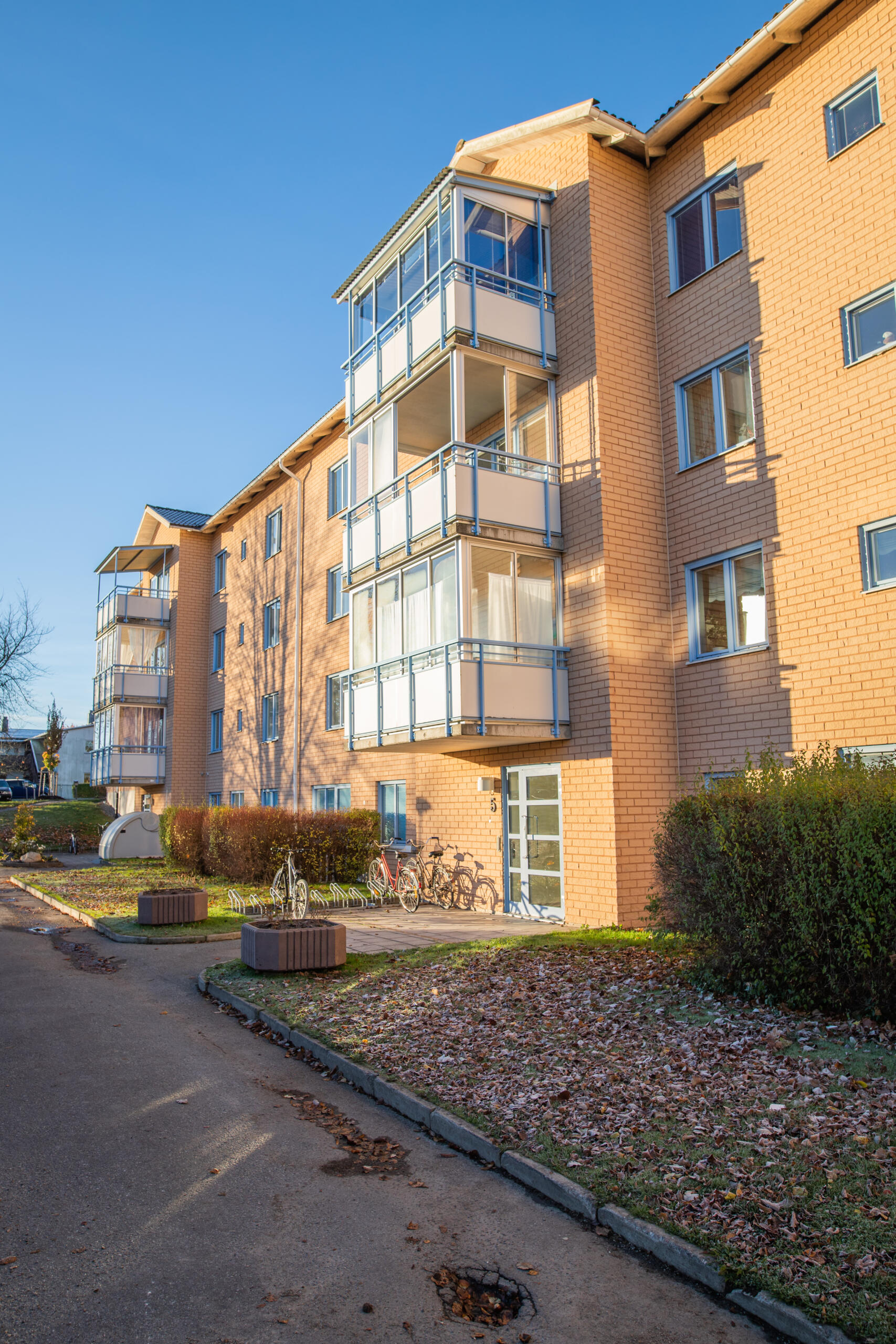 På Järnavägen 5-7 har vi ett trevåningshus med 22 lägenheter i storleken 1, 2 och 4 rum och kök.