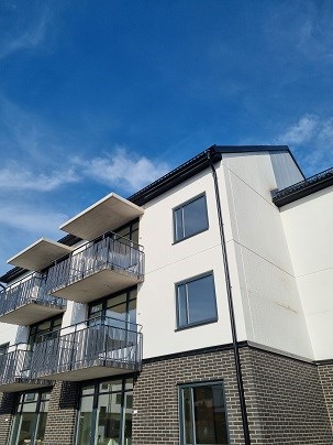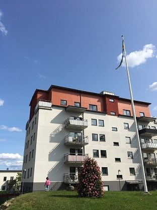 På Järnavägen har vi ett trevåningshus med 22 lägenheter i storleken 1, 2 och 4 rum och kök.
